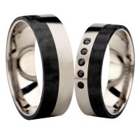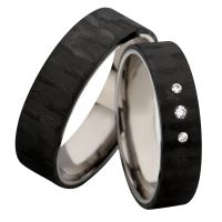 Upea kivetön hiilikuitu-/titaanisormus (kuvassa vasemmalla puolella). 3D Carbon -sormuksen runko on 5mm leveä. Kevyt ja kestävä hiilikuitu-/titaanisormus sopii hyvin esimerkiksi kihla- tai vihkisormukseksi. Sormus on erittäin trendikäs ja soveltuu jokapäiväiseen käyttöön.