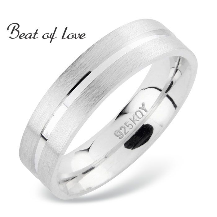 Tyylikäs hopeinen Beat of Love -sormus. Flakkarunkoisen sormuksen pinta on harjattu, keskellä kulkee kepea, kiillotettu koristeraita. Sormus on rodinoitu. Leveys 5mm. Pyöristetty sisäpinta = Comfort fit