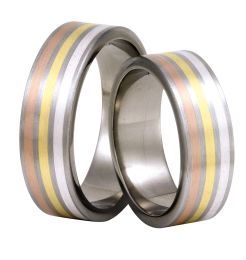 - 3D Titanium, Titaanisormus hopeisella, puna- ja keltakultaisella raidalla, 7mm°Tarjoushinta 510,00 € Normaalihinta 850,00 €