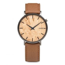 Valikoimastamme löytyvät Aarni miesten ja naisten kellot useissa eri malleissa ja väreissä. Kellojen elegantti muotoilu, sekä materiaali tekee käyttäjäänsä lähtemättömän vaikutuksen. Aarni puukellot eivät hiosta rannetta ja ovat kevyitä käyttää sekä arjessa, että juhlassa. Puisten rannekellojen rannekkeet ovat saatavilla sekä nahkaisena tai puisena, riippuen minkä mallin valitset. Nahkaranneke on valmistettu luonnollisesti kotimaisesta hirvennahasta. Aarni puukelloista löytyy markkinoiden parhaat koneistot ja osat. Puiset rannekellot huokuvat eleganttia arvokkuutta ja ovat designia arvostavan valinta.