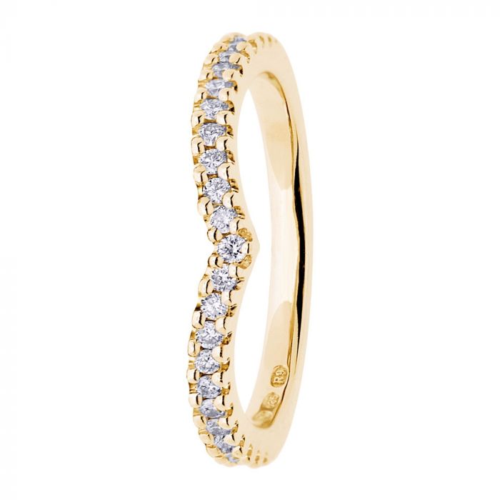 Suomalaisen Festiven Donna -rivitimanttisormus on valmistettu keltakullasta. Sormuksessa on kaunis, v-mallinen muoto ja vahva flakkarunko. V-muotoon on istutettu yhteensä 23 timanttia. Donna-sormuksen on suunnitellut Annika Takanen.