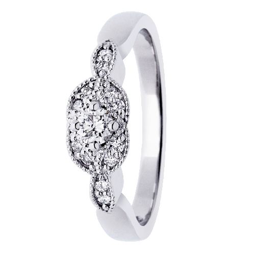 Kotimainen, tyylikäs Festive Vintage, Lavender -timanttisormus. Kaunis 1900-luvun alkupuolen romanttinen muotokieli ja tämän päivän moderni korumuotoilu yhdistyy Vintage-malliston sormuksissa. Sormuksessa on vahva, kevyesti pyöristetty flakkarunko. Naiselliseen ja siroon timanttisormukseen on istutettu 13 kauniisti säihkyvää timanttia.