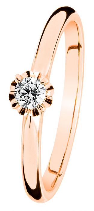 Kaunis, Lyyran tähdistön päätähden mukaan nimetty Kohinoor Vega -timanttisormus ihastuttaa säihkeellään. Sirossa sormuksessa on elegantti, kukkamainen kruunuistutus, jonka keskellä kimaltelee 0,09ct W/Si timantti. 14K punakullasta valmistetun sormuksen runko on puolipyöreä. Design Sami Laatikainen.