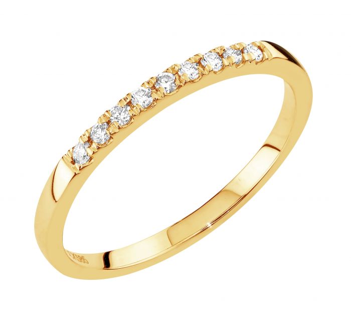 Tyylikäs, keltakullasta valmistettu Gladas -rivitimanttisormus on Malmin Korupajan omaa Collection-mallistoa. Siroon sormukseen on istutettu yhdeksän briljanttihiottua timanttia. Ihastuttavan sormuksen tynnyrirunko sopii oivallisesti sekä puolipyöreä ja flakkarunkoisen sormuksen viereen.