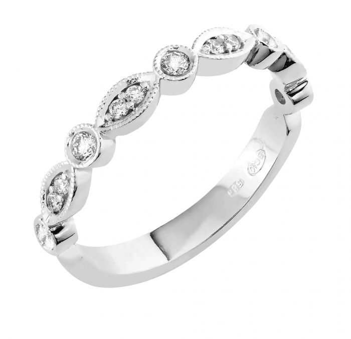 Näyttävä Malmin Korupajan oman malliston vintage -henkinen, Skansen -timanttisormus. Kaunis, romanttinen muotokieli ja tämän päivän moderni korumuotoilu yhdistyvät Vintage-malliston sormuksissa. Sormuksessa on kevyesti pyöristetty flakkarunko. Tämä sormus sopii erinomaisesti kapean kihlasormuksen rinnalle. Myös Halo- sormukset istuvat hienosti tämän naisellisen sormuksen viereen. Siroon timanttisormukseen on istutettu 13 kauniisti säihkyvää timanttia. Timanttien väri on H(wesselton, väritön) js puhtaus on Si (ei silmin havaittavia sulkeumia).