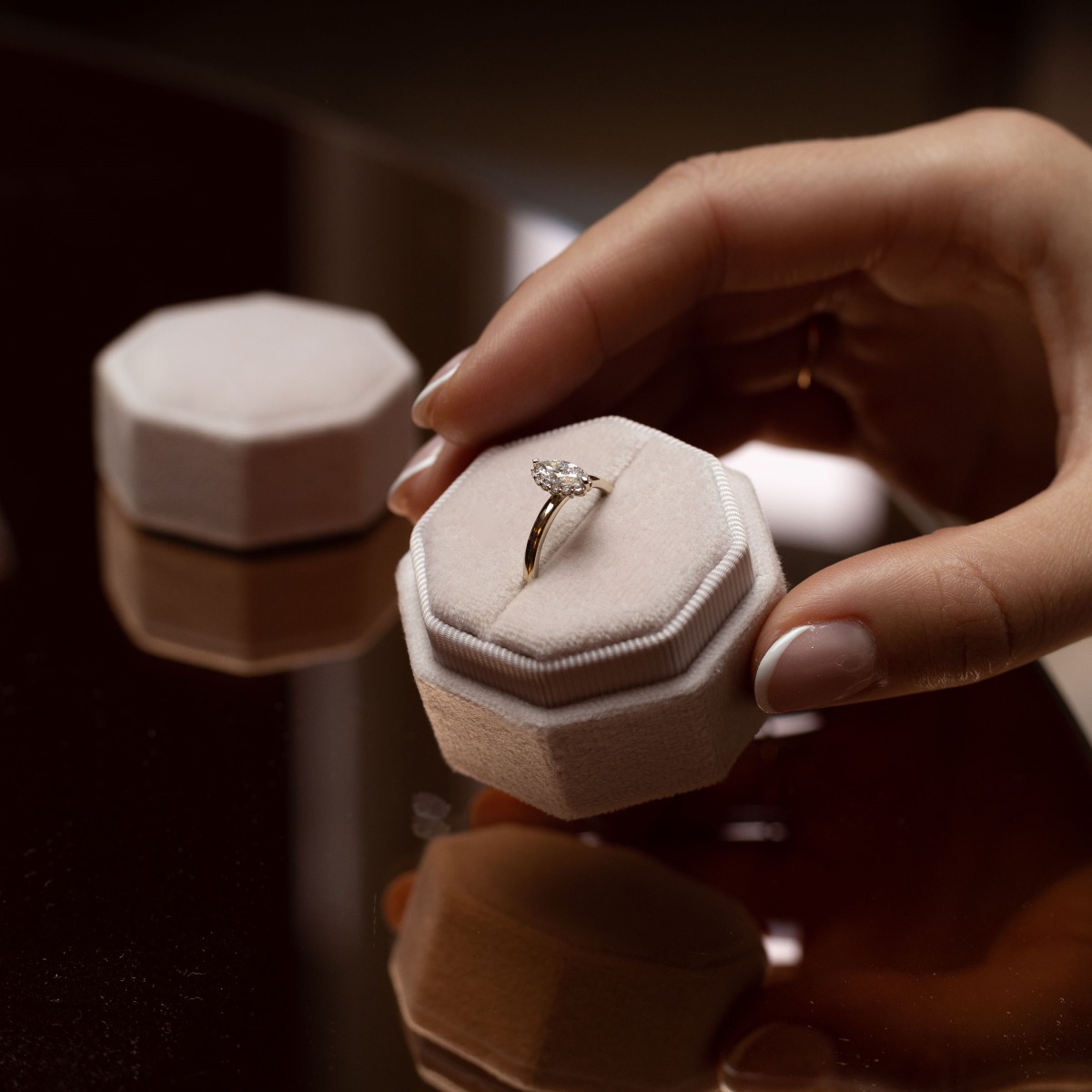 Daphne-laboratoriotimanttisormus samppanjakultaisena.