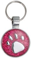 Metallinen, pyöreä nimilaatta kissalle tai koiralle! Laatassa on ihanasti kimalteleva, sininen glitter-emalointi ja teräksenvärinen tassunjälki. Kierrelenkin avulla nimilaatta on helppo kiinnittää kaulapantaan. Laatan kääntöpuolelle on mahdollista kaiverruttaa kissan nimi sekä omistajan yhteystiedot.