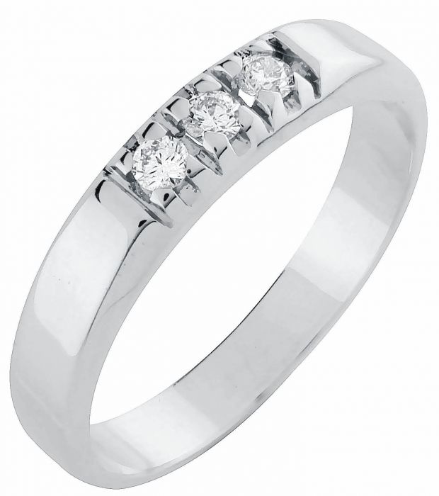 Perinteinen Paletti Jewelry -rivitimanttisormus. Valkokultaiseen sormukseen on istutettu kolme timanttia. Matalan istutuksen ansiosta sormus on erittäin käytännöllinen. Sopii useimpien sormusmallien rinnalle sekä myös yksin käytettynä.