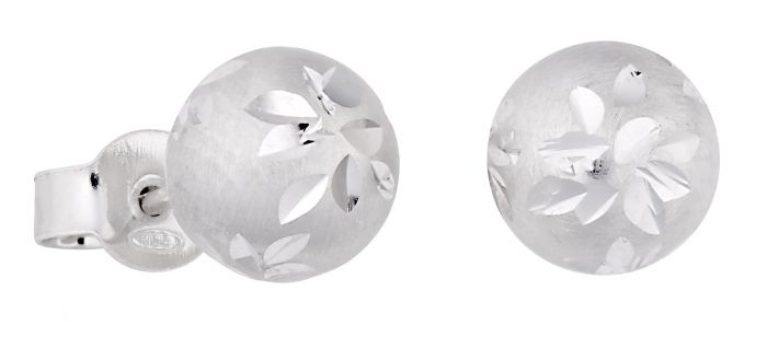 TImanttileikatut Eleanor-korvakorut. Mattapintainen hopeapallo timanttileikkauksella