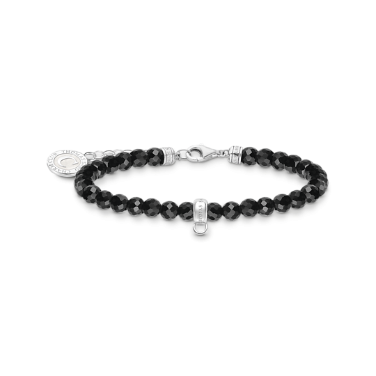 Tämä ihastuttava Thomas Sabon rannekoru on valmistettu hopeasta. Rannekoru on koristelty mustilla onyksihelmillä. Keskustassa on pieni hopeinen lenkki, johon saa halutessaan lisättyä esimerkiksi Thomas Sabo -charmin. Korun pituutta voi säätää itselleen sopivaksi papukaijalukon avulla. Rannekorun pituus on 16-19cm.